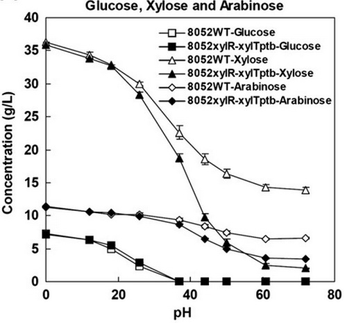 中科院上海生命科学研究院植生生态所杨晟和姜卫红课题组在上海工业生物技术研发中心筛选获得具有较好抑制物耐受能力的产溶剂梭菌宿主菌基础上,鉴定了五碳糖代谢途径相关基因,通过阻断特异性负调控因子以及强化糖转运速率等多种策略,显著提升了菌株对水解液中复杂碳源的共利用能力,发酵经济性提高显著。