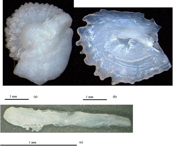 青海湖裸鲤的三种耳石(a)微耳石(b)星耳石(c)矢耳石