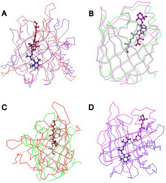 在进化过程中,相似的蛋白结构可以用完全不同的方式结合相同的配体。类维生素A转运蛋白就是一个很好的例子。虽然他们结合相似的配体(视黄醇,视黄酸),配体的结合机制却差别很大:在同一个家族和细胞位置的蛋白中配体结合方向相同;不同家族和细胞位置蛋白中配体结合方向相反。